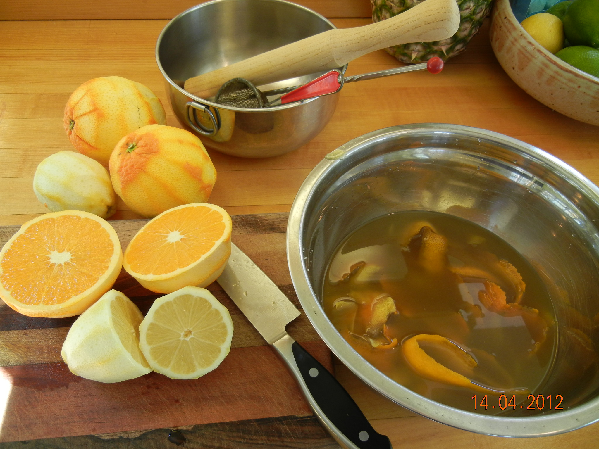 I was thinking there might be some osmotic mechanism also occurring to form the Oleo-Saccharum, however, after conferring with Dr. Rouseff, Professor of Food Chemistry at the University of Florida’s (where else?) Citrus Research and Education Center, this hypothesis was quickly dispelled.  So the Oleo-Saccharum, a Pillar of Punches is made by mechanically breaking open the oil vacuoles, which releases the citrus oil to saturate the sugar.