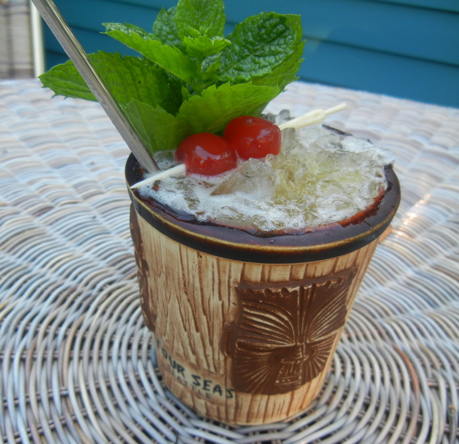 Summer in Seattle has finally kicked in.  True to form, this happened right after the 4th of July.  If you believe the meteorologists, at least half of the next 30 days will reach 80 degrees.  This is blowing my mind just a little and my PNW acclimated body is already dreading the ‘heat.’ But I digress…..To me, Summer also means minty cocktails in the sun on the deck.  CR and I were fortunate to recently move to a house with a very healthy mint crop.  This cocktail hobbyist has no complaints about that.  I’ve been enjoying making a myriad of cocktails with mint, Tiki being one of the predominant genres.